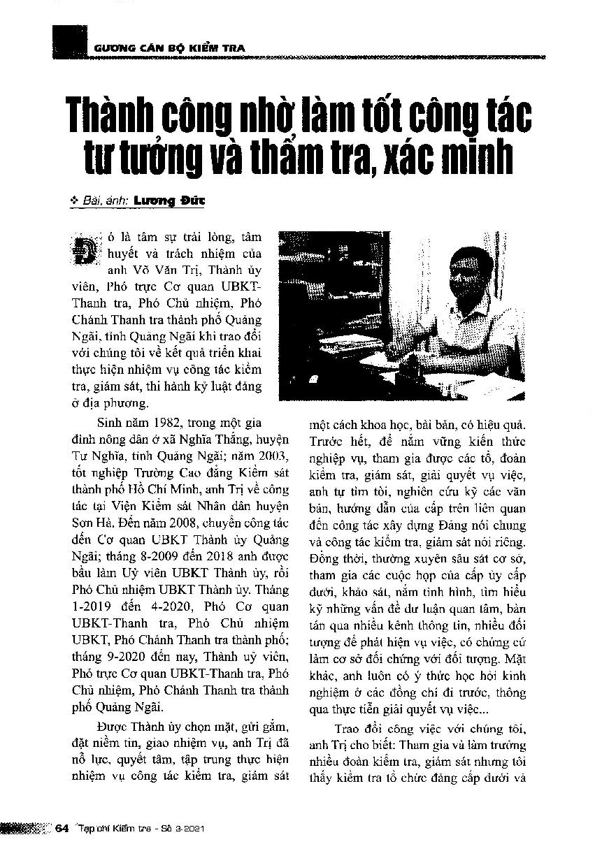 Thành công nhờ làm tốt công tác tư tưởng và thẩm tra, xác minh