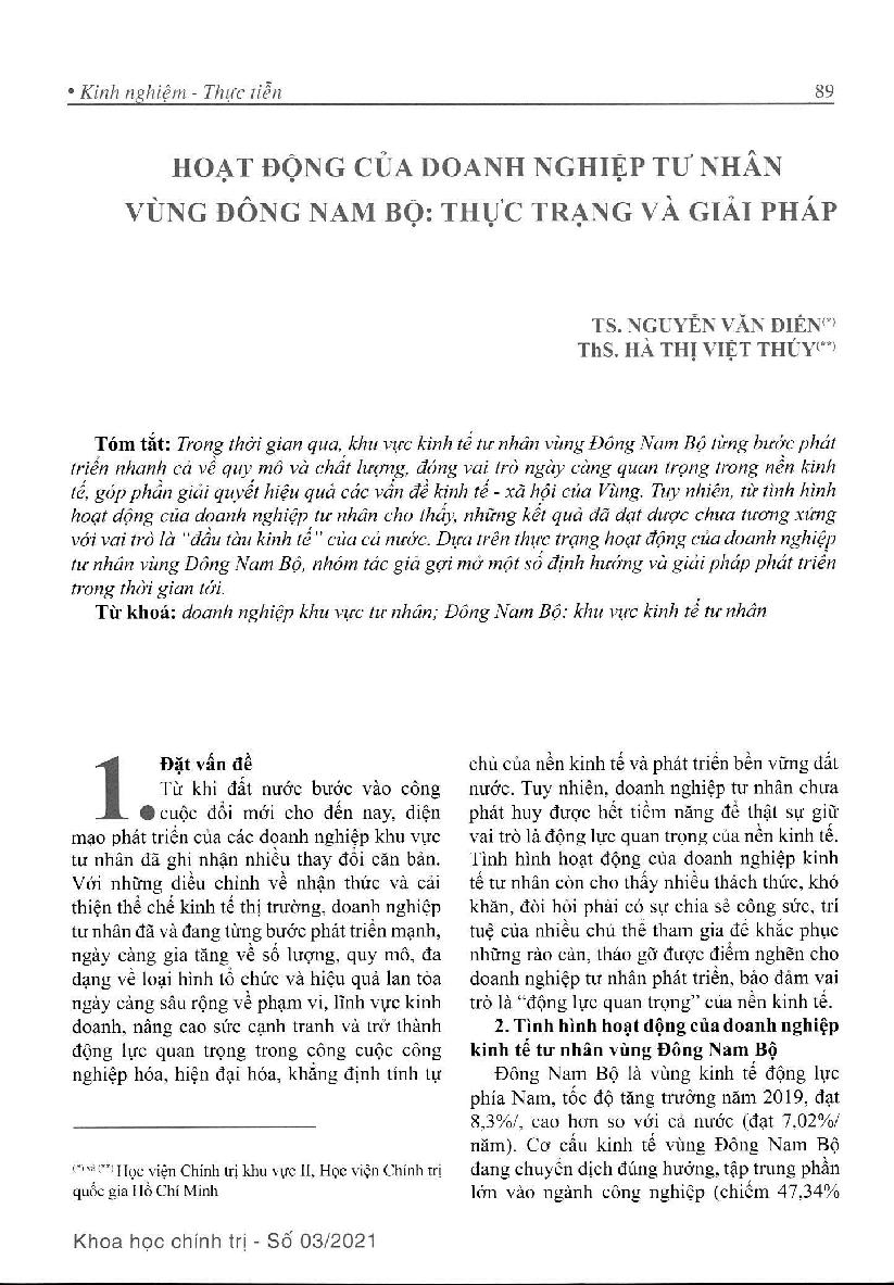 Hoạt động của doanh nghiệp tư nhân vùng Đông Nam bộ: thực trạng và giải pháp