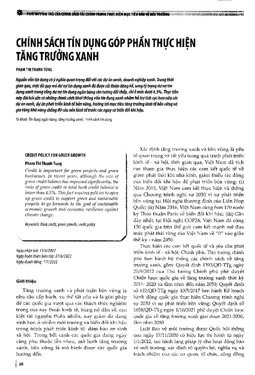 Chính sách tín dụng góp phần thực hiện tăng trưởng xanh = Credit policy for green growth