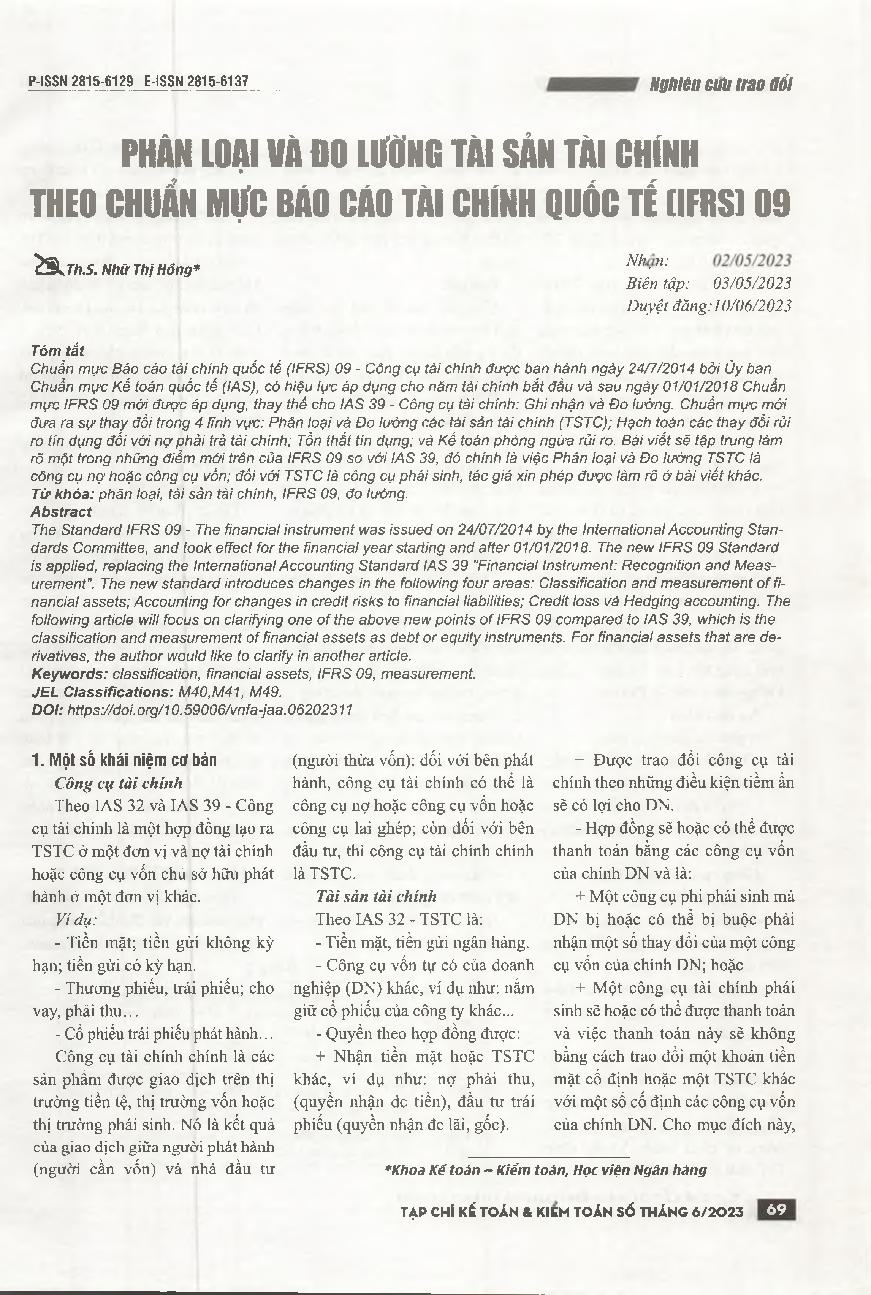 Phân loại và đo lường tài sản tài chính theo Chuẩn mực Báo cáo tài chính quốc tế (IFRS) 09