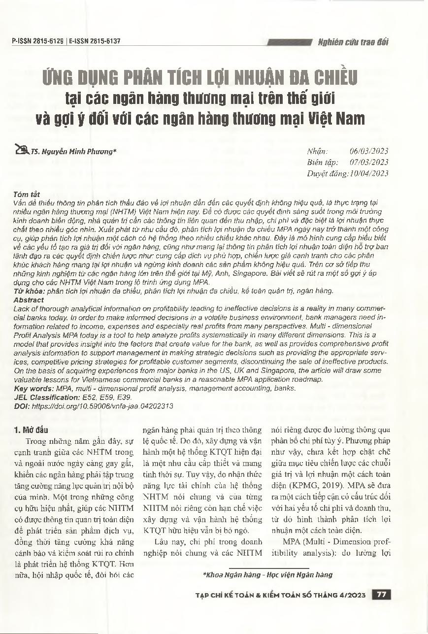 Ứng dụng phân tích lợi nhuận đa chiều tại các ngân hàng thương mại trên thế giới và gợi ý đối với các ngân hàng thương mại Việt Nam = Multi - dimensional profit analysis in the global context and suggestions for vietnamese commercial banks