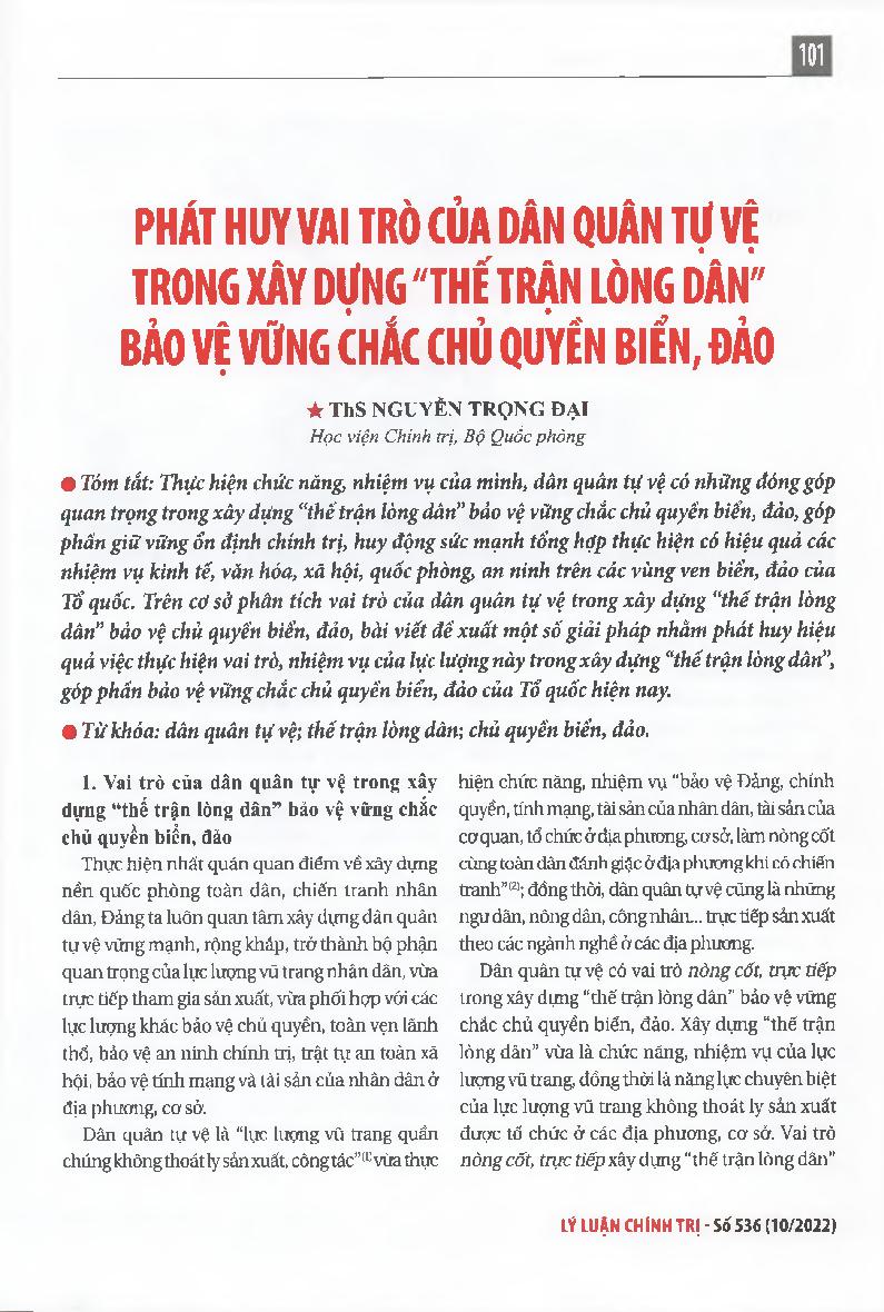 Phát huy vai trò của dân quân tự vệ trong xây dựng “thế trận lòng dân” bảo vệ vững chắc chủ quyền biển, đảo