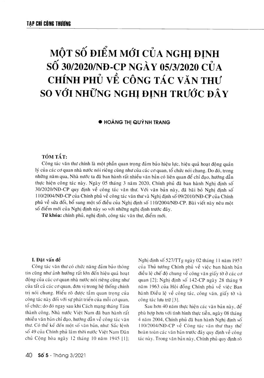 Một số điểm mới của Nghị định số 30/2020/NĐ-CP ngày 05/3/2020 của Chính phủ về công tác văn thư so với những nghị định trước đây