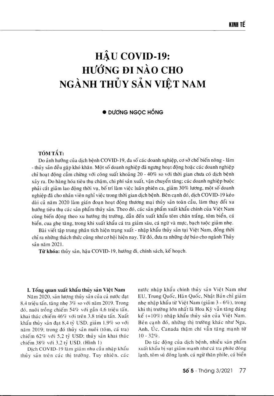 Hậu COVID-19: Hướng đi nào cho ngành Thủy sản Việt Nam