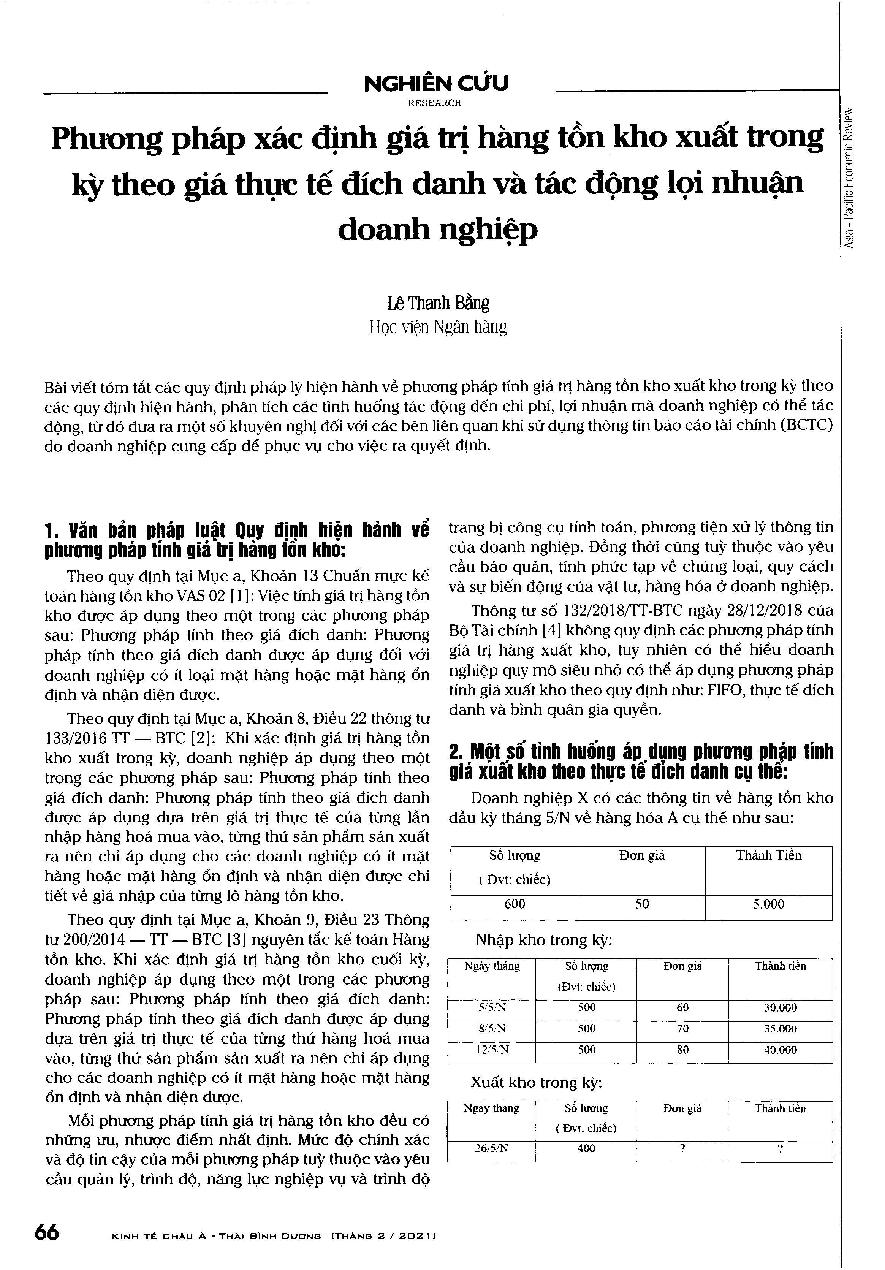 Phương pháp xác định giá trị hàng tồn kho xuất trong kỳ theo giá thực tế đích danh và tác động lợi nhuận doanh nghiệp