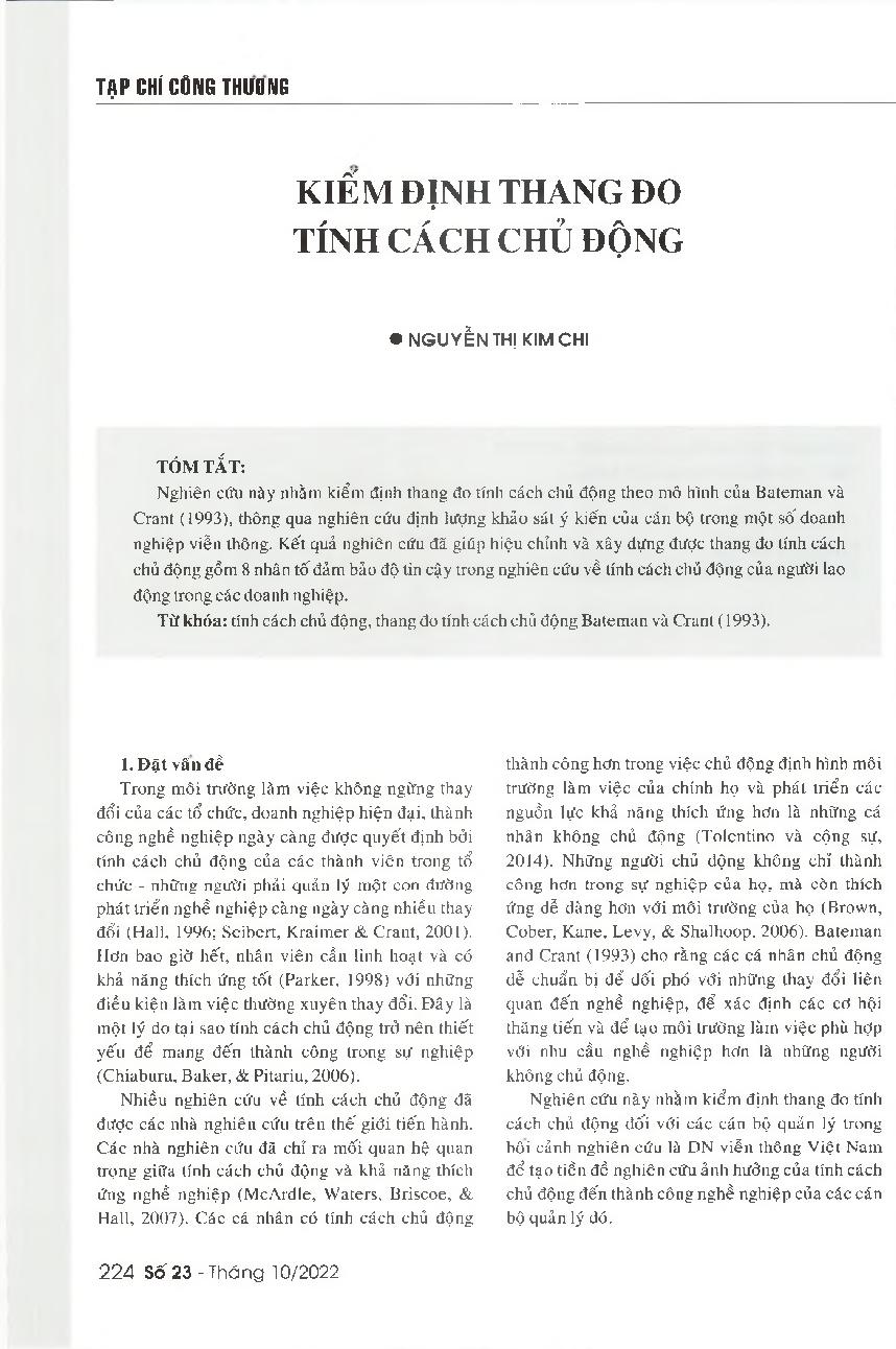 Kiểm định thang đo tính cách chủ động = Testing the Proactive Personality Scale