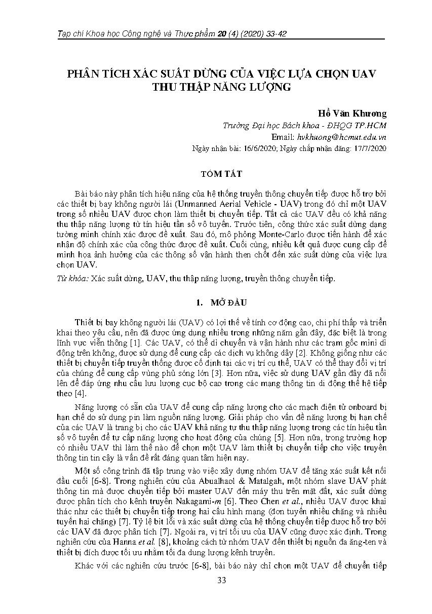 Phân tích xác suất dừng của việc lựa chọn UAV thu thập năng lượng = Outage probability analysis of energy harvesting UAV selection