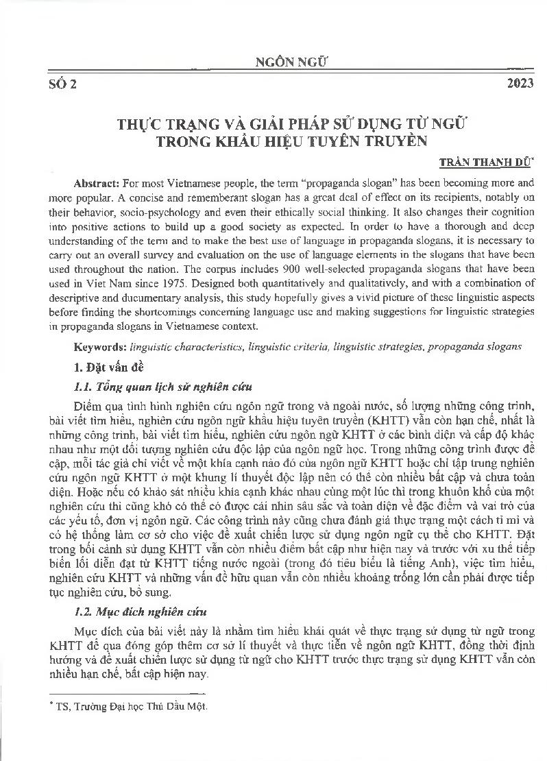 Thực trạng và giải pháp sử dụng từ ngữ trong khẩu hiệu tuyên truyền = Language use in propaganda slogans: Problems and recommendations
