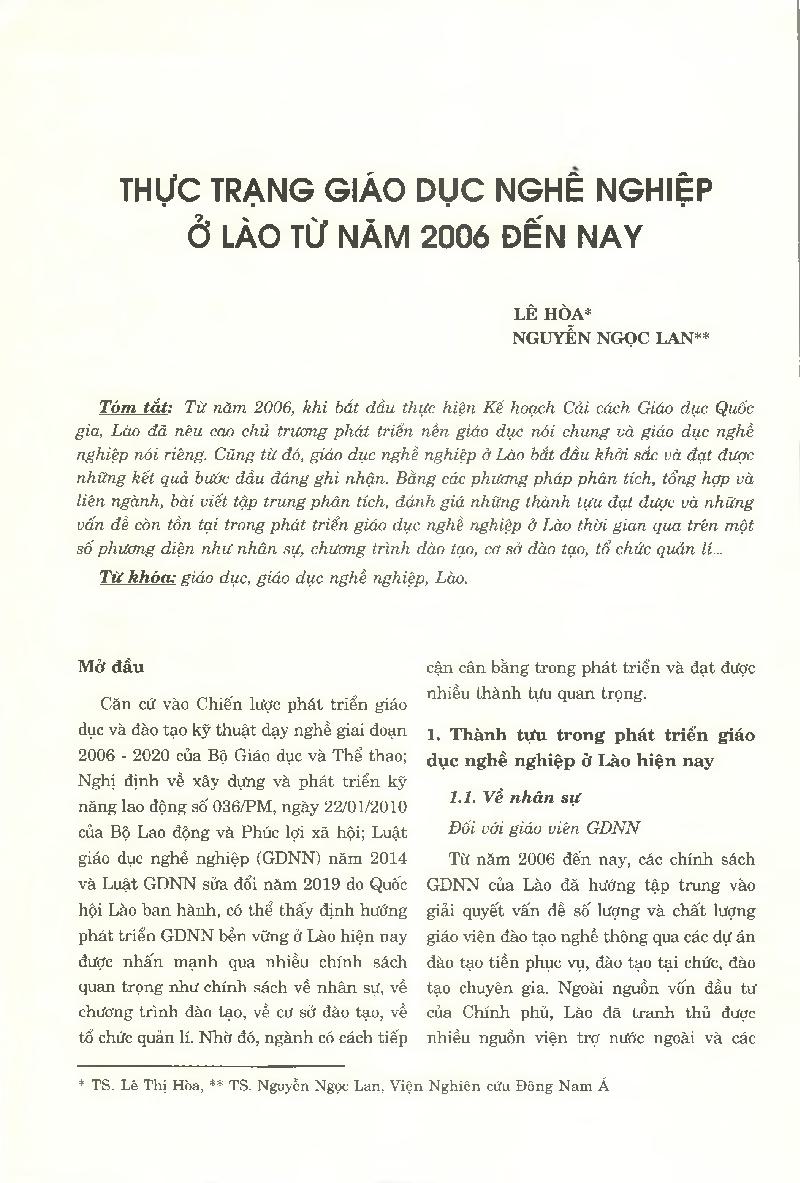 Thực trạng giáo dục nghề nghiệp ở Lào từ nám 2006 đến nay = Current Situation of Vocational Education in Laos since 2006