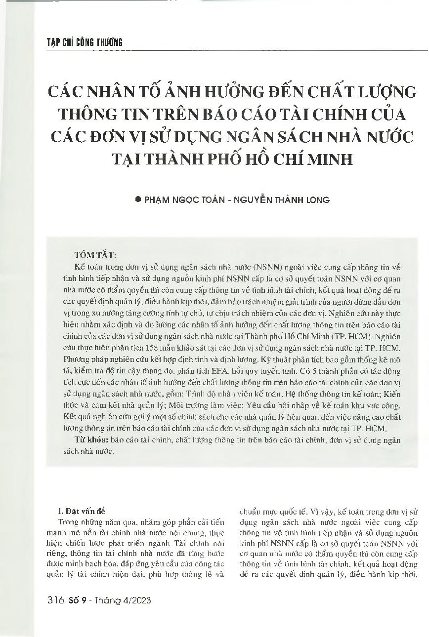 Các nhân tố ảnh hưởng đến chất lượng thông tin trên báo cáo tài chính của các đơn vị sử dụng ngân sách nhà nước tại thành phố Hồ Chí Minh