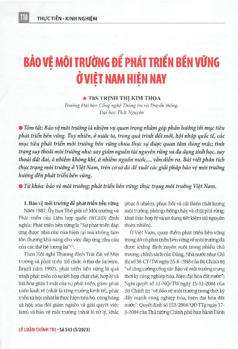 Bảo vệ môi trường để phát triển bền vững ở Việt Nam hiện nay