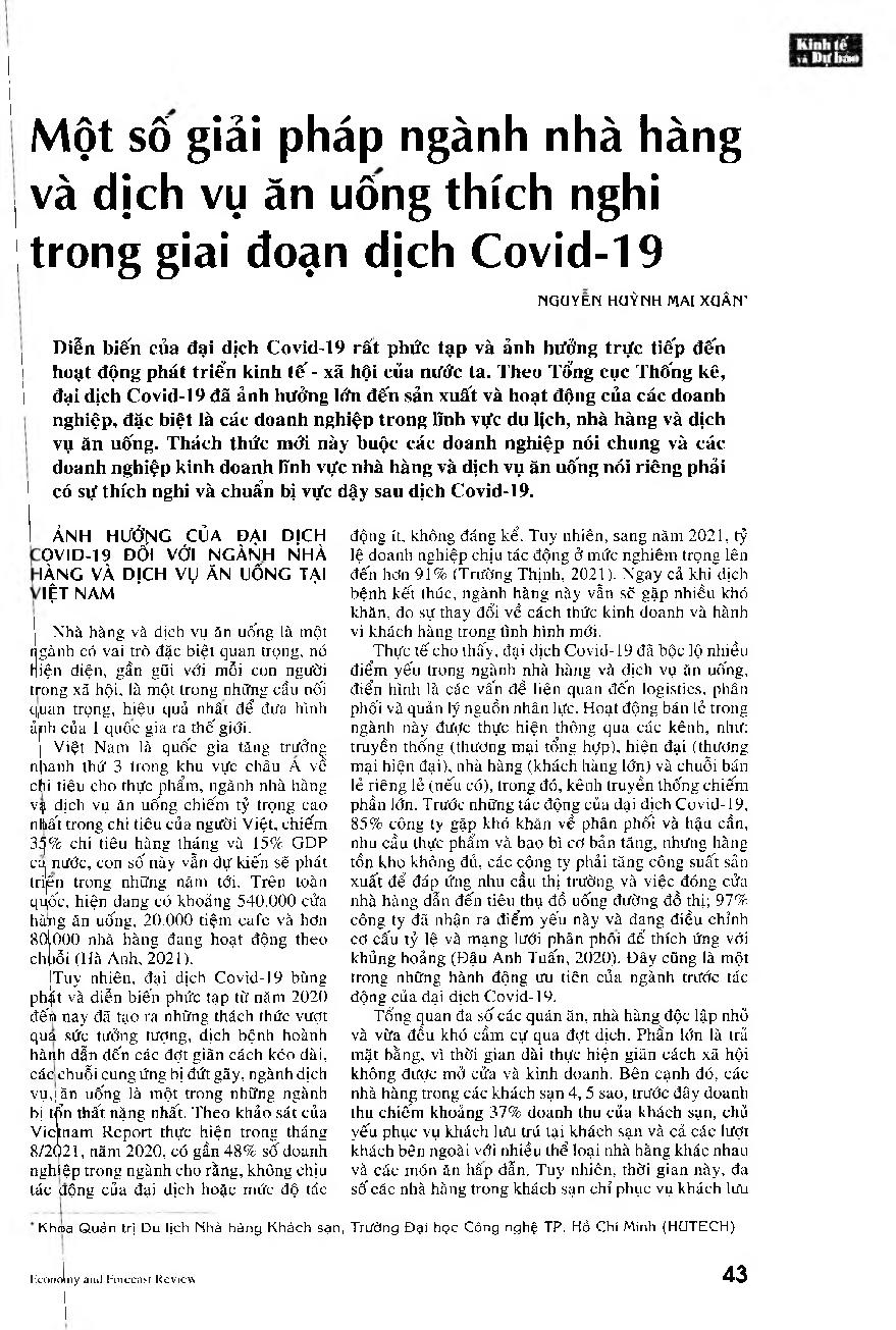 Một số giải pháp ngành nhà hàng và dịch vụ ăn uống thích nghi trong giai đoạn dịch Covid-19