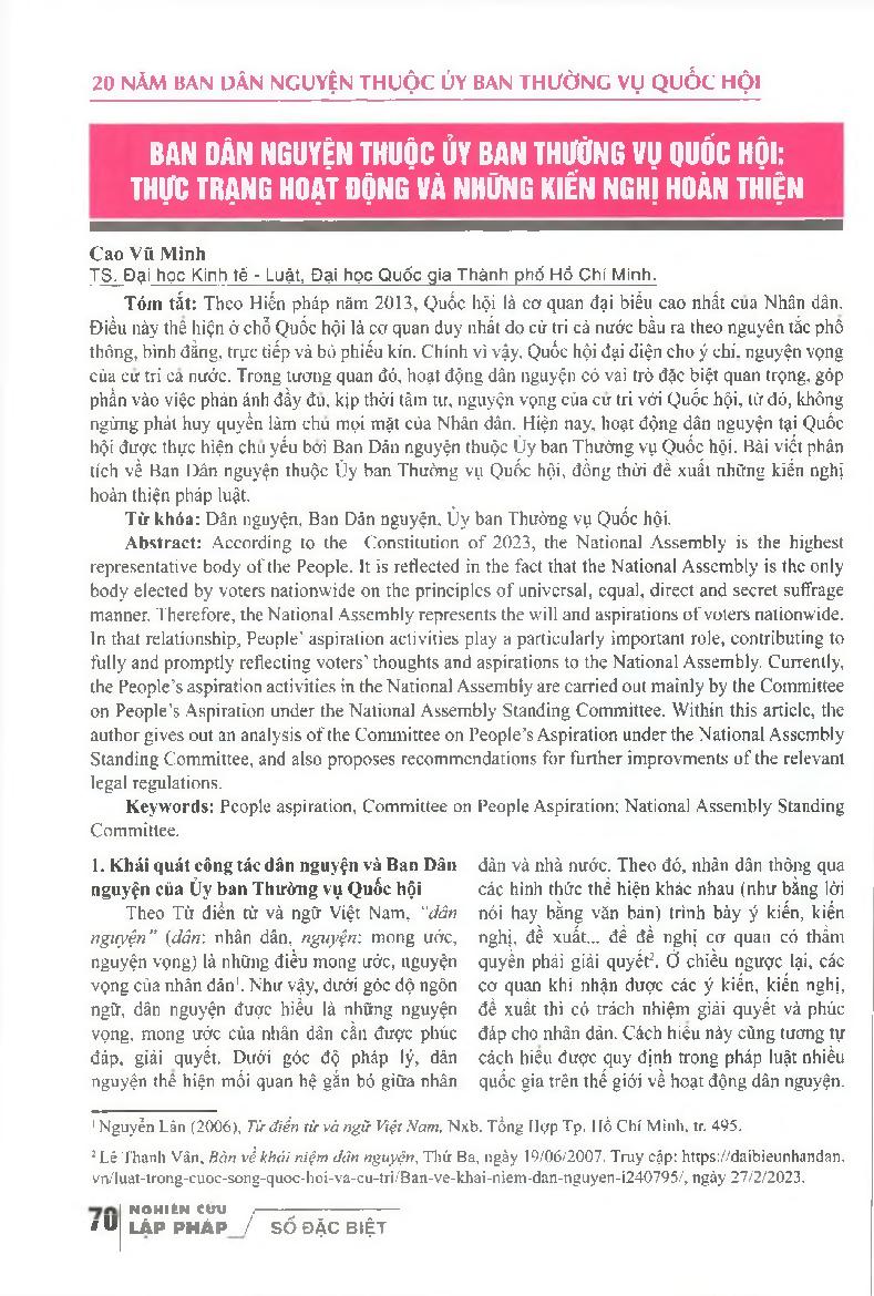 Ban dân nguyện thuộc Ủy ban Thường vụ Quốc hội: thực trạng hoạt động và những kiến nghị hoàn thiện = The People's Volunteers Committee of the National Assembly Standing Committee: current status of operation and recommendations for improvement