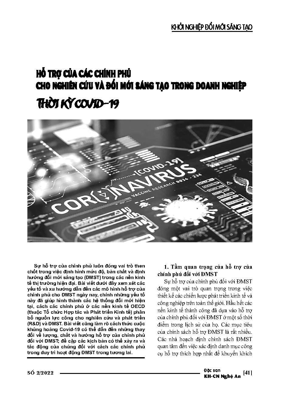Hỗ trợ của các chính phủ cho nghiên cứu và đổi mới sáng tạo trong doanh nghiệp thời kỳ Covid-19
