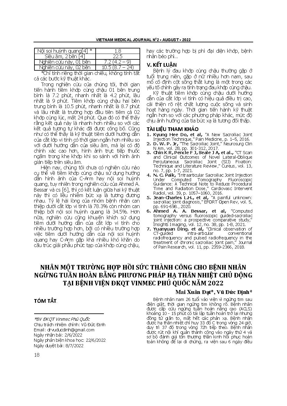 Nhân một trường hợp hồi sức thành công cho bệnh nhân ngừng tuần hoàn bằng phương pháp hạ thân nhiệt chủ động tại Bệnh viện Đa khoa Quốc tế Vinmec Phú Quốc năm 2022 = A case of resuscitation of a patient with circulatory arrest by controlled hypothermia at