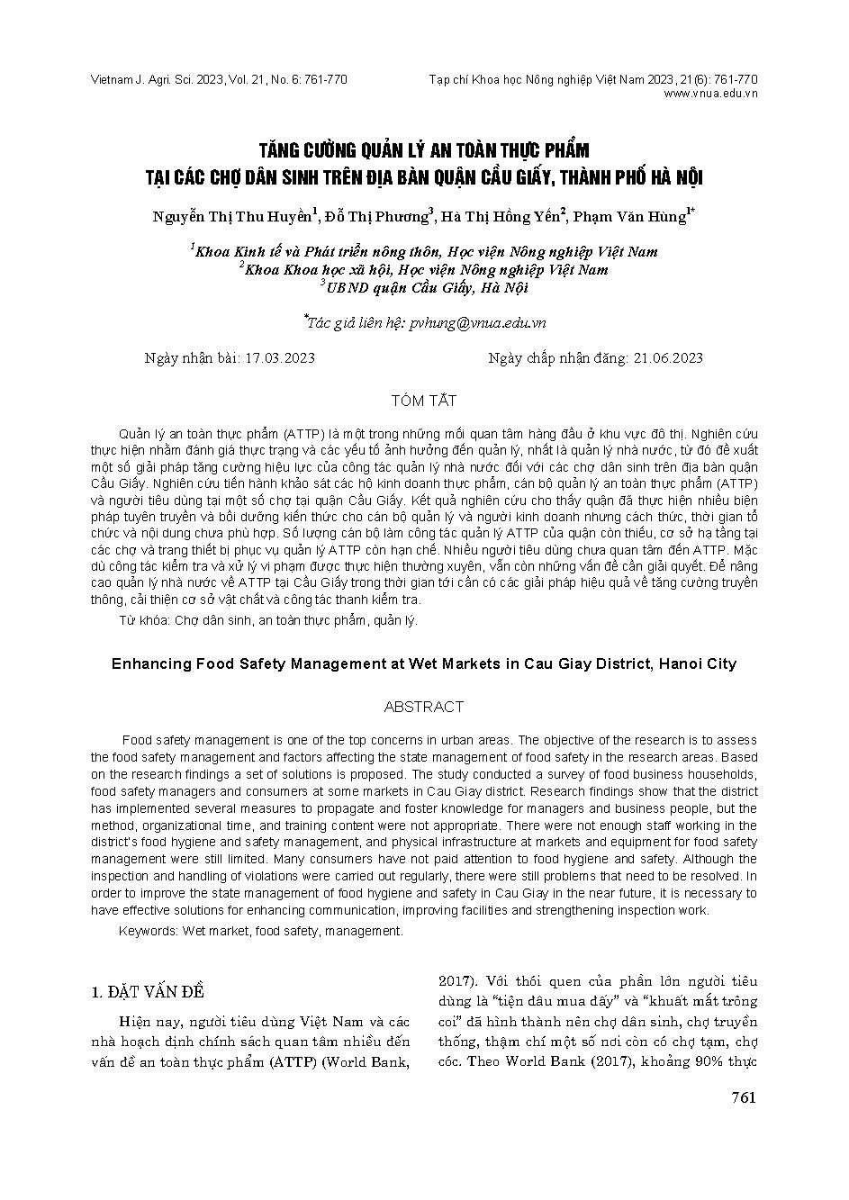 Tăng cường quản lý an toàn thực phẩm tại các chợ dân sinh trên địa bàn quận Cầu Giấy, thành phố Hà Nội