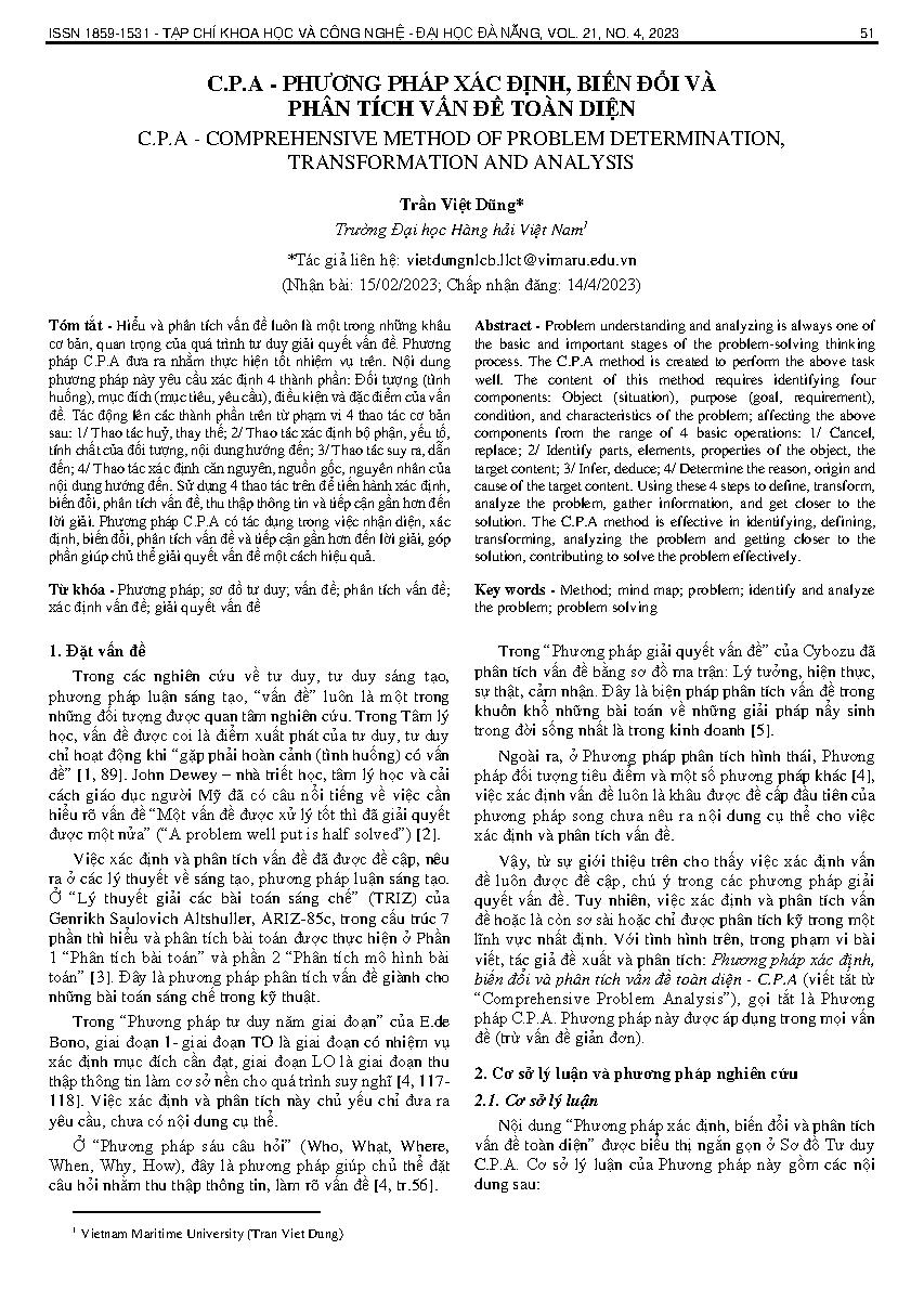 C.P.A - Phương pháp xác định, biến đổi và phân tích vấn đề toàn diện = C.P.A - Comprehensive method of problem determination, transformation and analysis