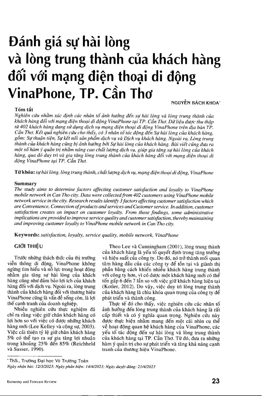 Đánh giá sự hài lòng và lòng tin của khách hàng đối với mạng di động VinaPhone, TP. Cần Thơ