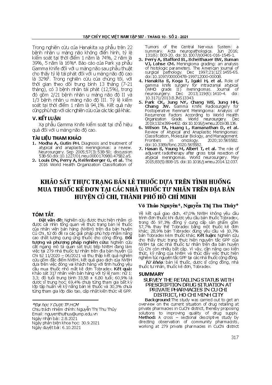 Khảo sát thực trạng bán lẻ thuốc dựa trên tình huống mua thuốc kê đơn tại các nhà thuốc tư nhân trên địa bàn huyện Củ Chi, thành phố Hồ Chí Minh = Survey the retailing status with prescription drug situation at private pharmacies in Cu Chi district, Ho Chi Minh city