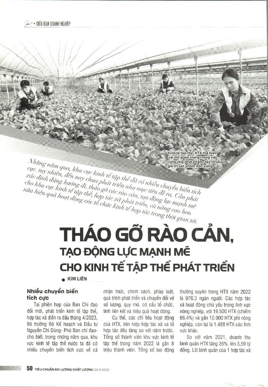 Tháo gỡ rào cản, tạo động lực mạnh mẽ cho kinh tế tập thể phát triển = Remove barriers and create strong motivation for collective economic development