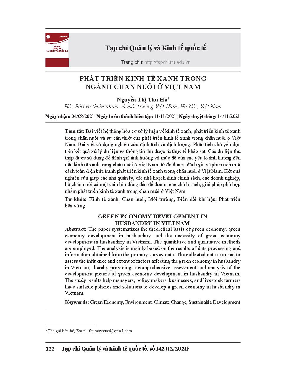 Phát triển kinh tế xanh trong ngành chăn nuôi ở Việt Nam = Green economy development in husbandry in Vietnam