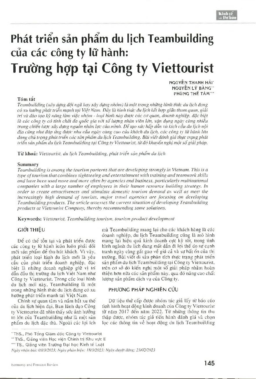 Phát triển sản phẩm du lịch Teambuilding của các công ty lữ hành: Trường hợp tại Công ty Viettourist