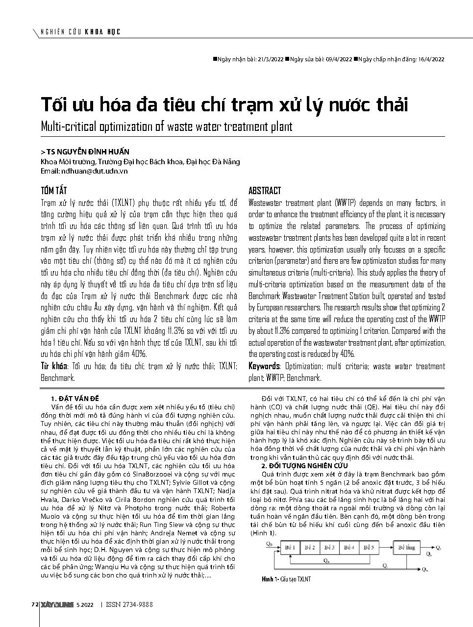 Tối ưu hóa đa tiêu chí trạm xử lý nước thải = Multi-critical optimization of waste water treatment plant