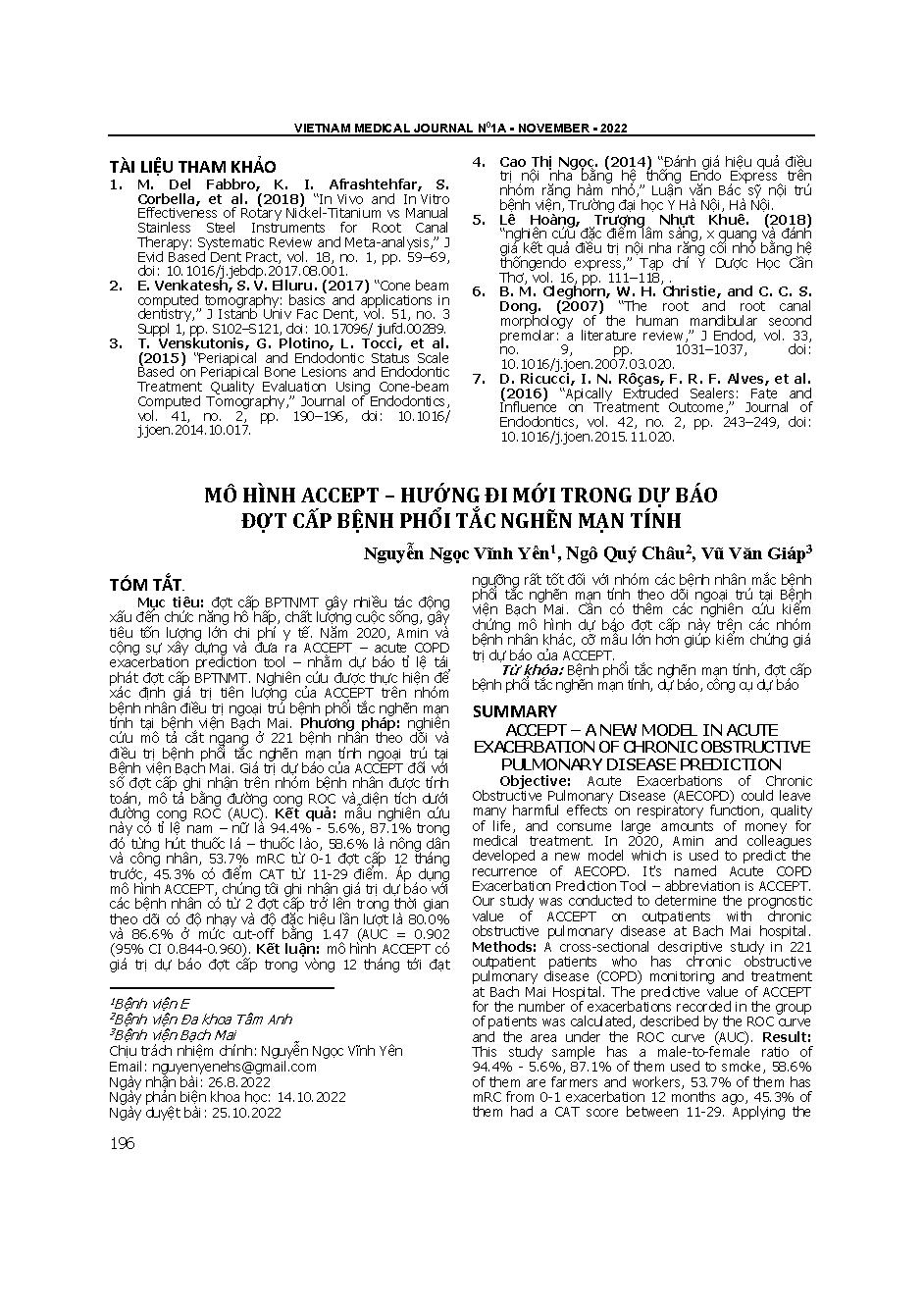 Mô hình ACCEPT – hướng đi mới trong dự báo đợt cấp bệnh phổi tắc nghẽn mạn tính = ACCEPT – A new model in acute exacerbation of chronic obstructive pulmonary disease prediction