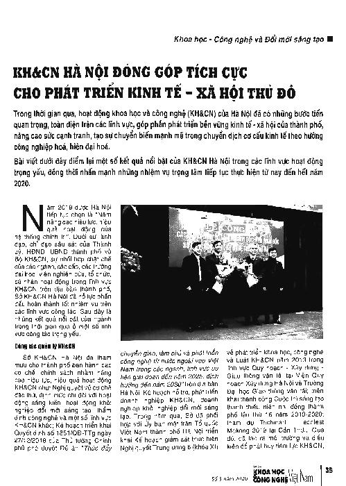 KH&CN Hà Nội đóng góp tích cực cho phát triển kinh tế - xã hội thủ đô = Hanoi Science and Technology makes a positive contribution to the city's socio-economic development
