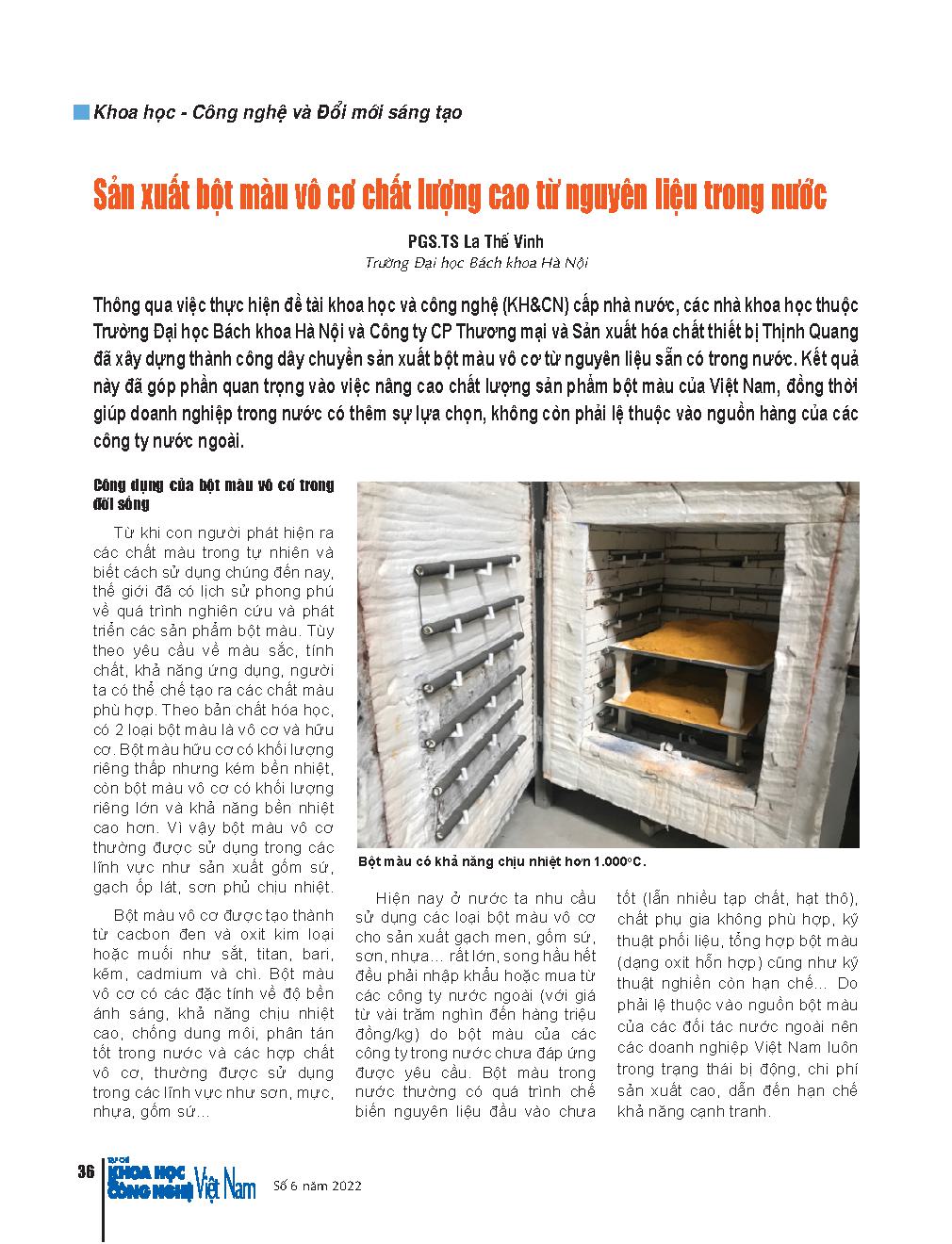Sản xuất bột màu vô cơ chất lượng cao từ nguyên liệu trong nước = Producing high quality inorganic pigments from domestic raw materials