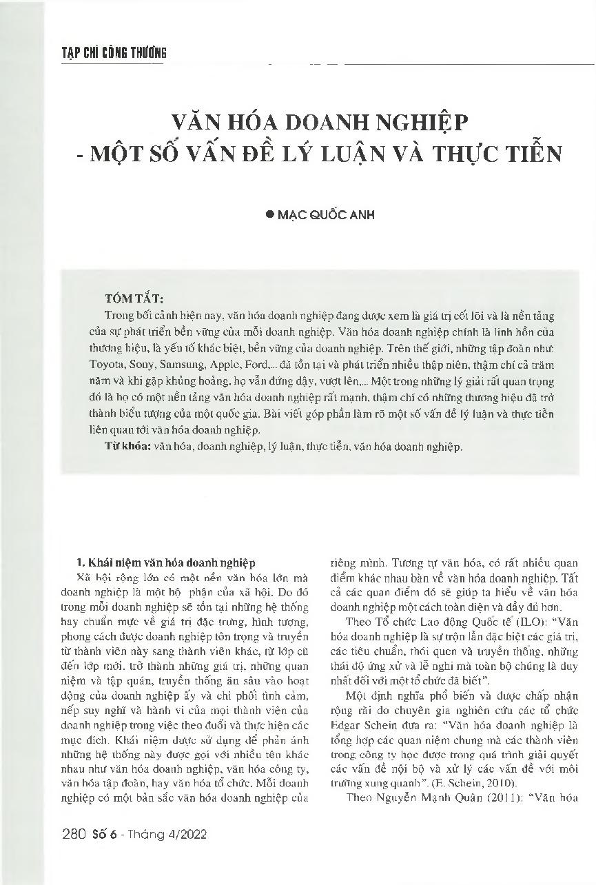 Văn hóa doanh nghiệp - Một số vấn đề lý luận và thực tiễn = The corporate culture - Some theoretical and practical issues