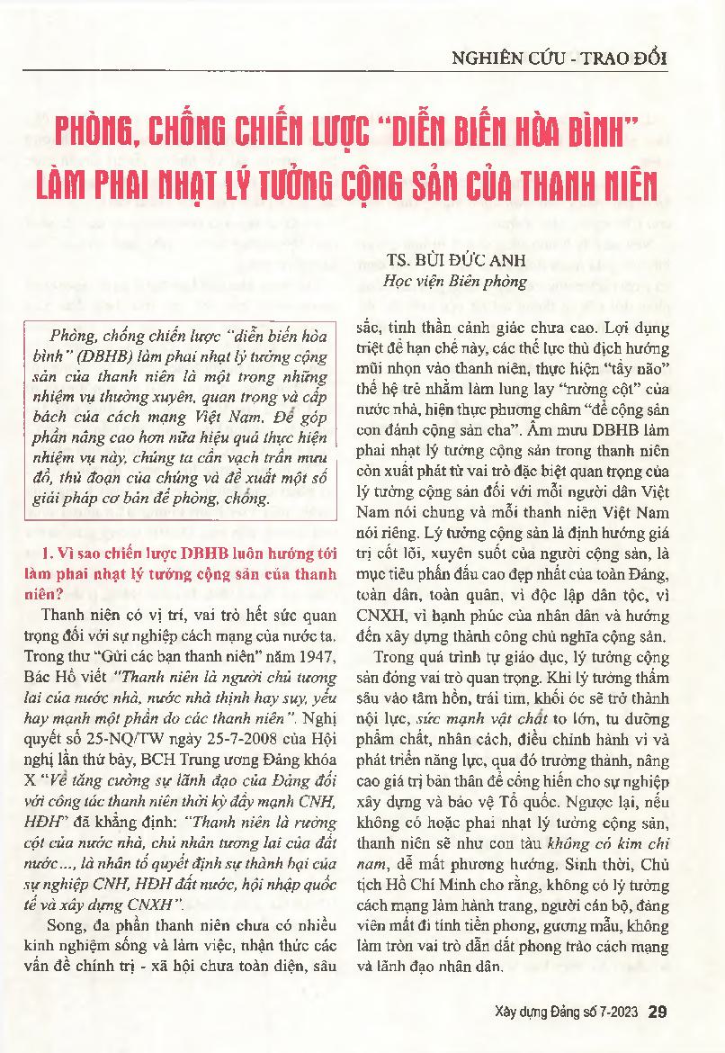 Phòng, chống chiến lược "Diễn biến hòa bình" làm phai nhạt lý tưởng cộng sản của thanh niên