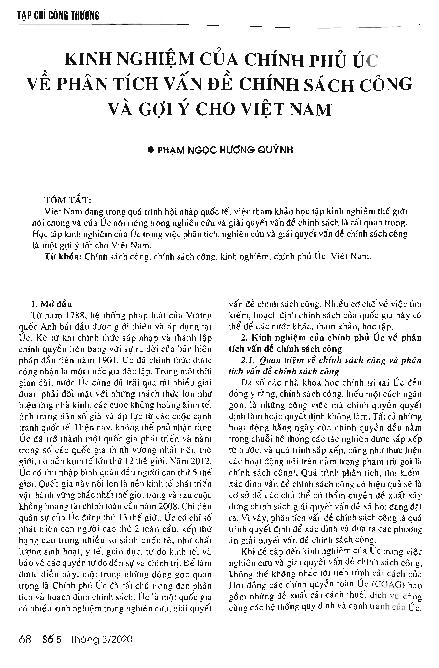 Kinh nghiệm của Chính phủ Úc về phân tích vấn đề chính sách công và gợi ý cho Việt Nam = Experience of the government of Australia in public policy issues and recommendations for Vietnam