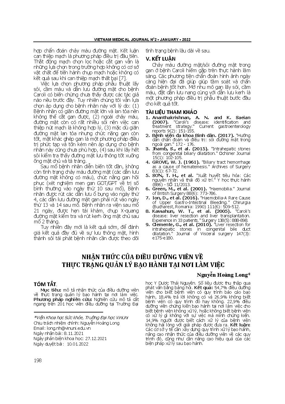 Nhận thức của điều dưỡng viên về thực trạng quản lý bạo hành tại nơi làm việc = Nurses’ perceptions toward workplace violence management in health sectors