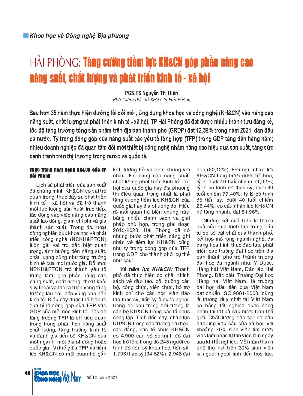 Hải Phòng: Tăng cường tiềm lực KH&CN góp phần nâng cao năng suất, chất lượng và phát triển kinh tế - xã hội
