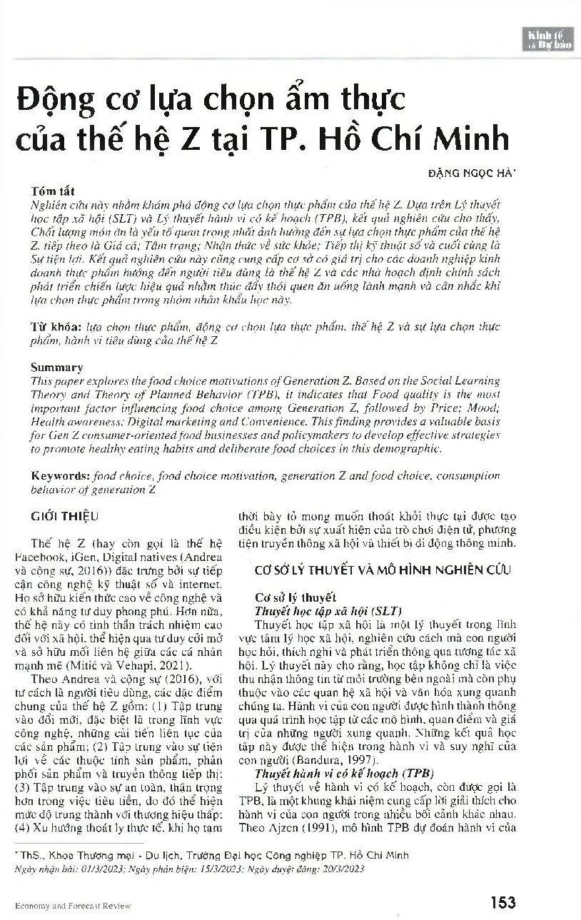 Động cơ lựa chọn ẩm thực của thế hệ Z tại TP. Hồ Chí Minh