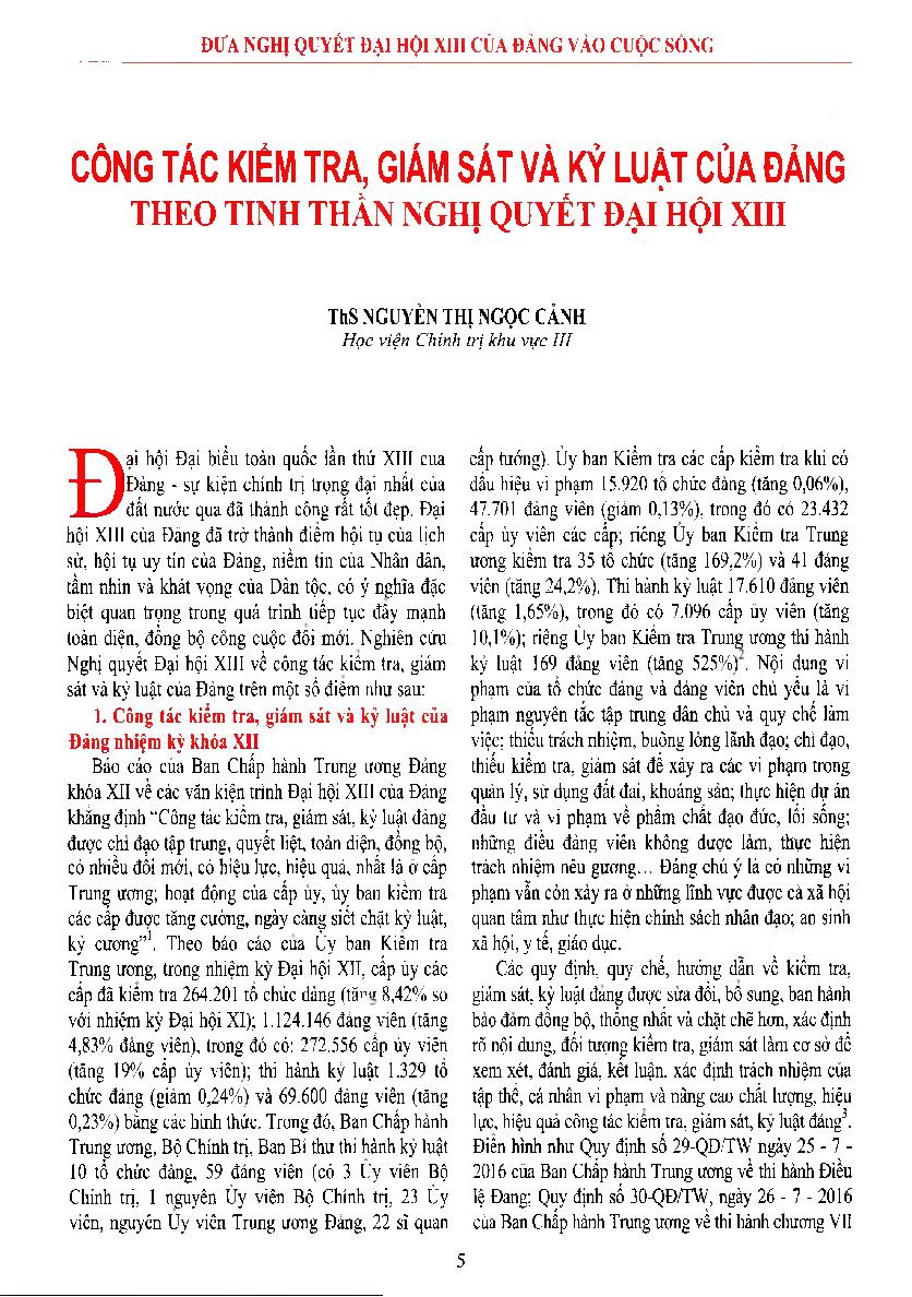 Công tác kiểm tra, giám sát và kỷ luật của Đảng theo tinh thần nghị quyết Đại hội XIII
