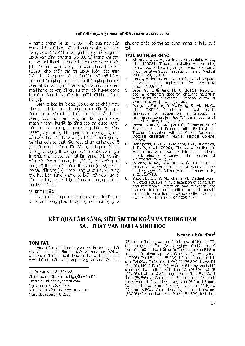 Kết quả lâm sàng, siêu âm tim ngắn và trung hạn sau thay van hai lá sinh học