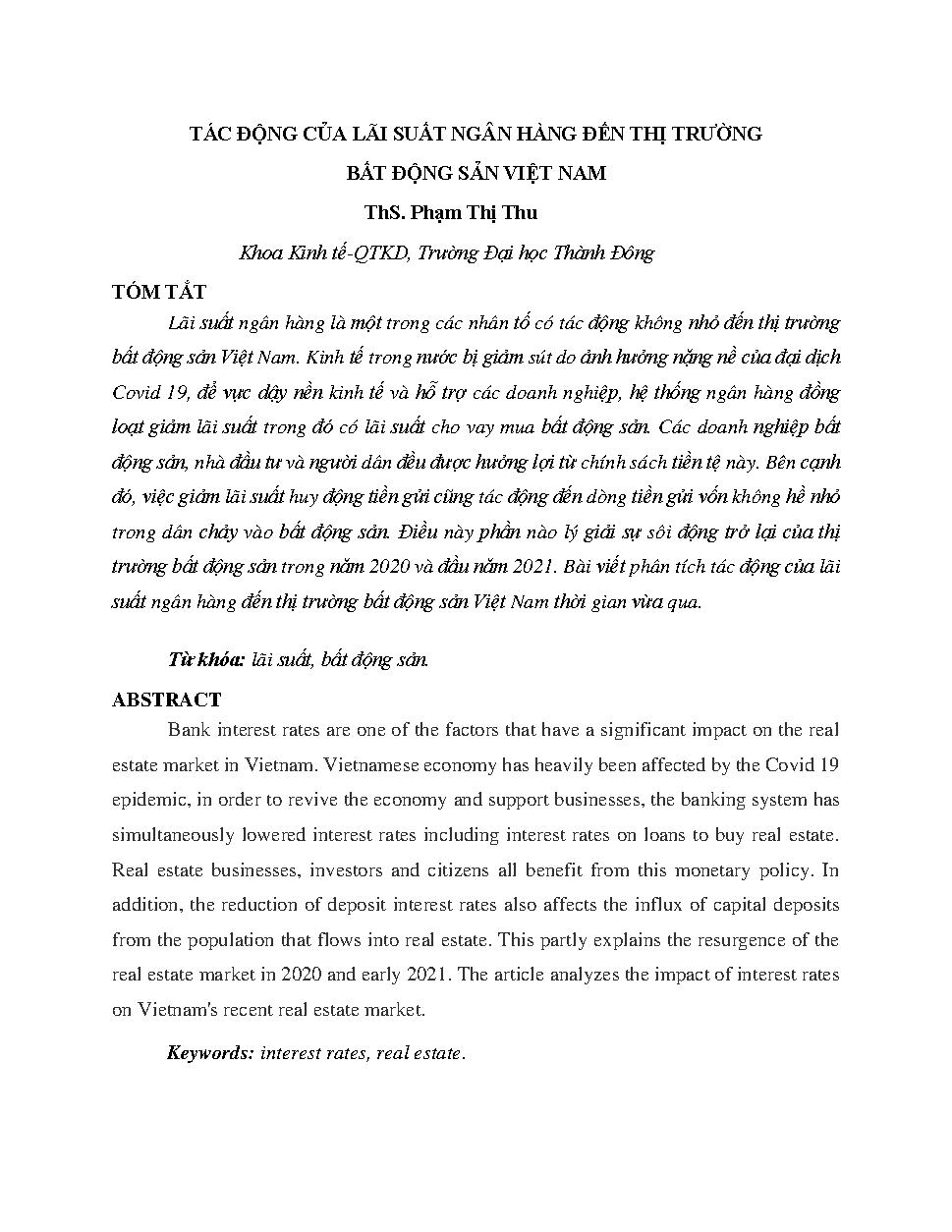 Tác động của lãi suất ngân hàng đến thị trường bất động sản việt nam