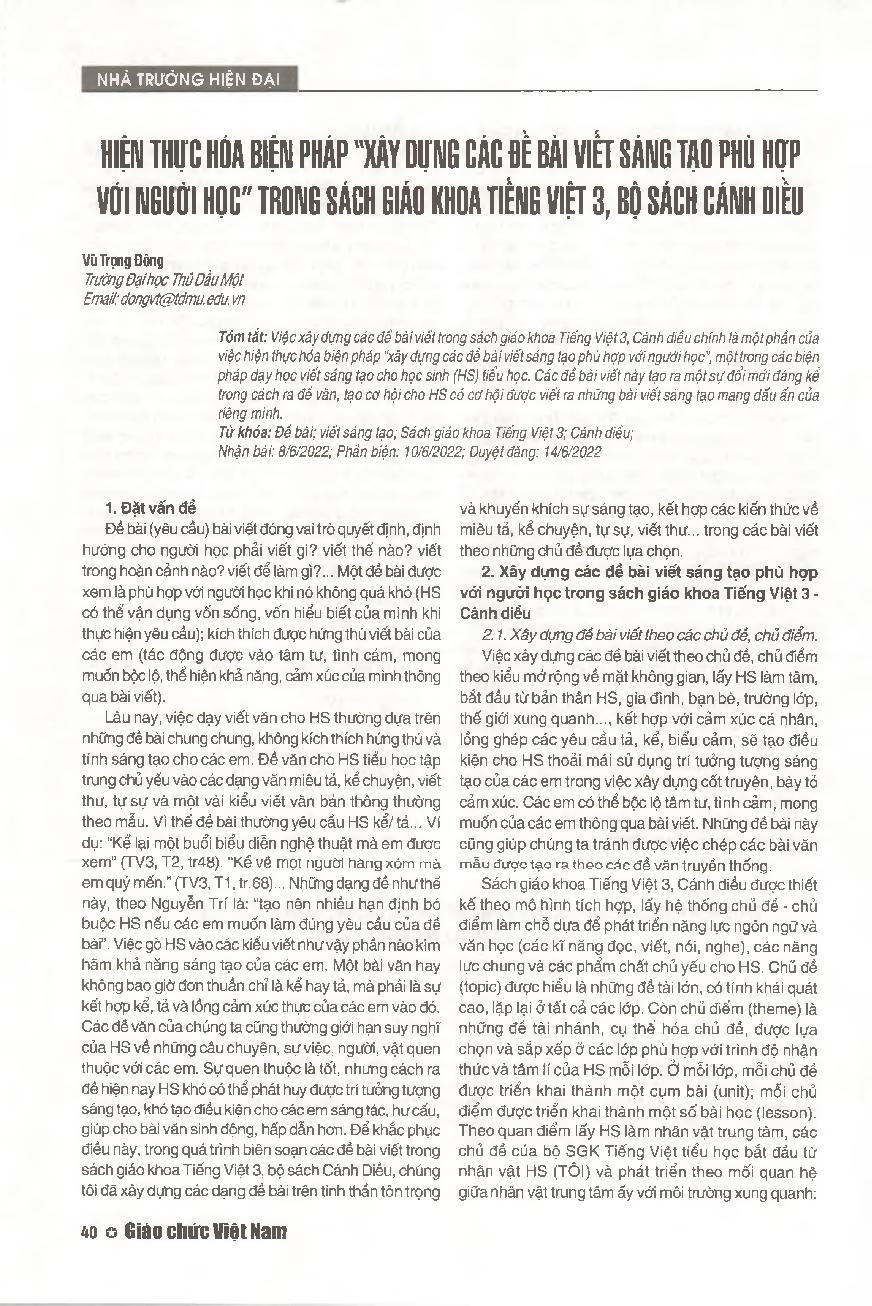 Hiện thực hóa biện pháp "xây dựng các đề bài viết sáng tạo phù hợp với người học" trong sách giáo khoa tiếng Việt 3, bộ sách Cánh diều