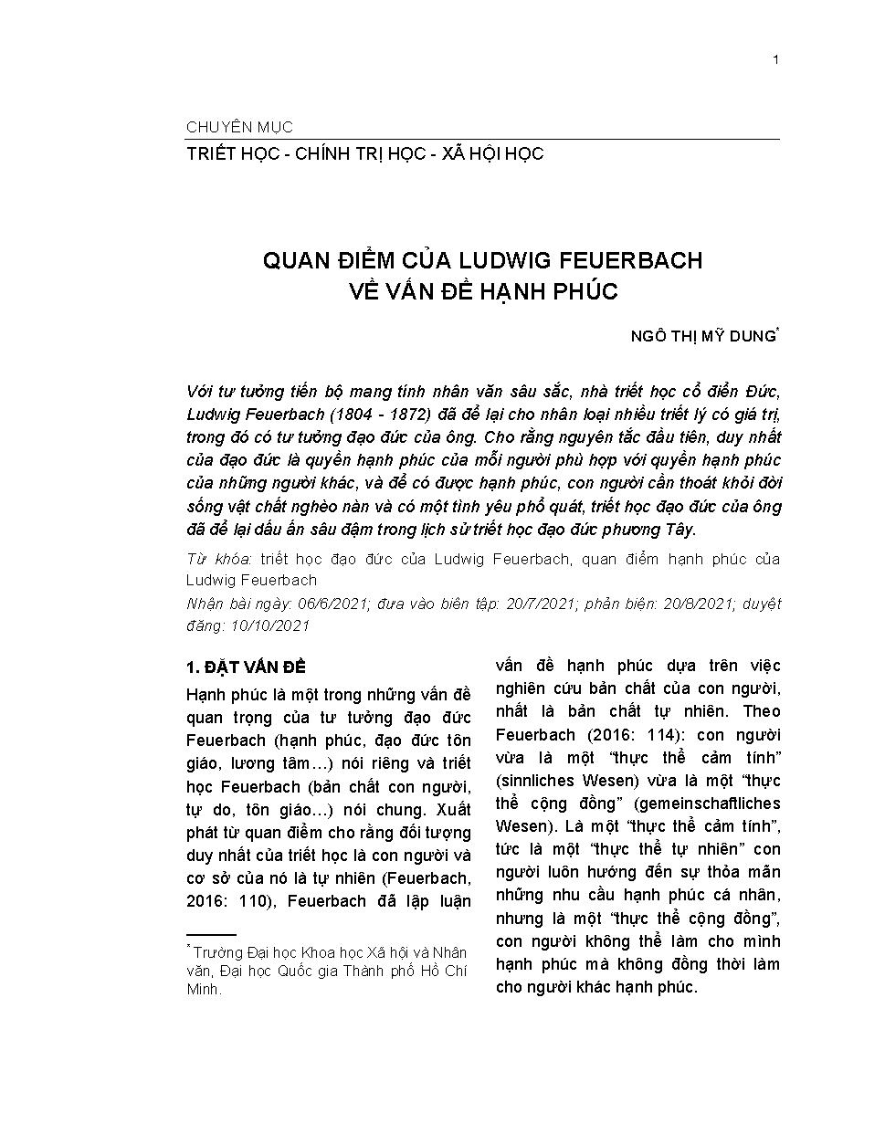 Quan điểm của Ludwig Feuerbach về vấn đề hạnh phúc = Ludwig Feuerbach's conception of the question of happiness