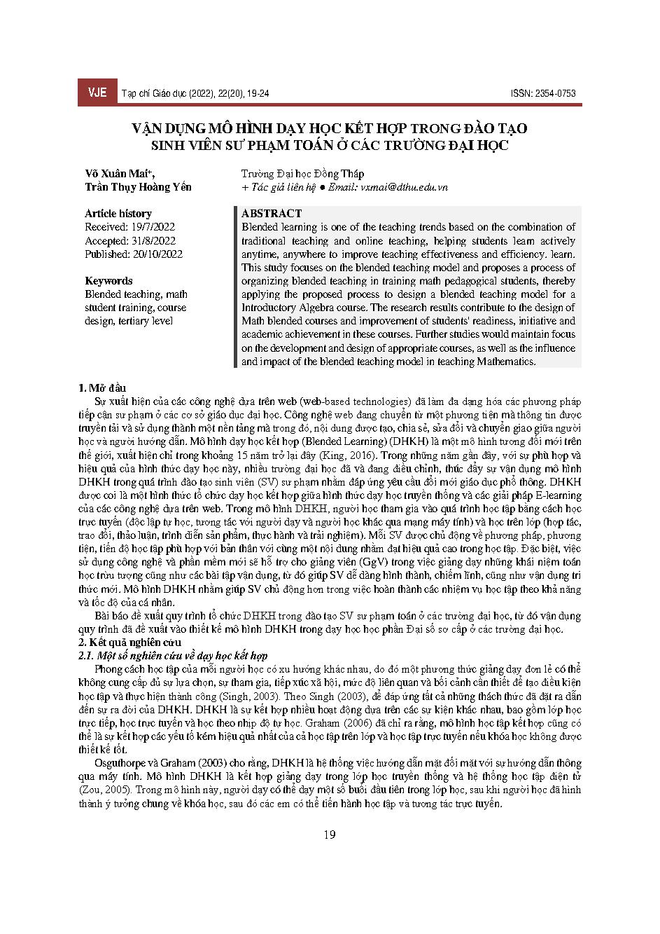 Vận dụng mô hình dạy học kết hợp trong đào tạo sinh viên sư phạm toán ở các trường đại học = Applying the combined teaching model in training math pedagogical students at universities