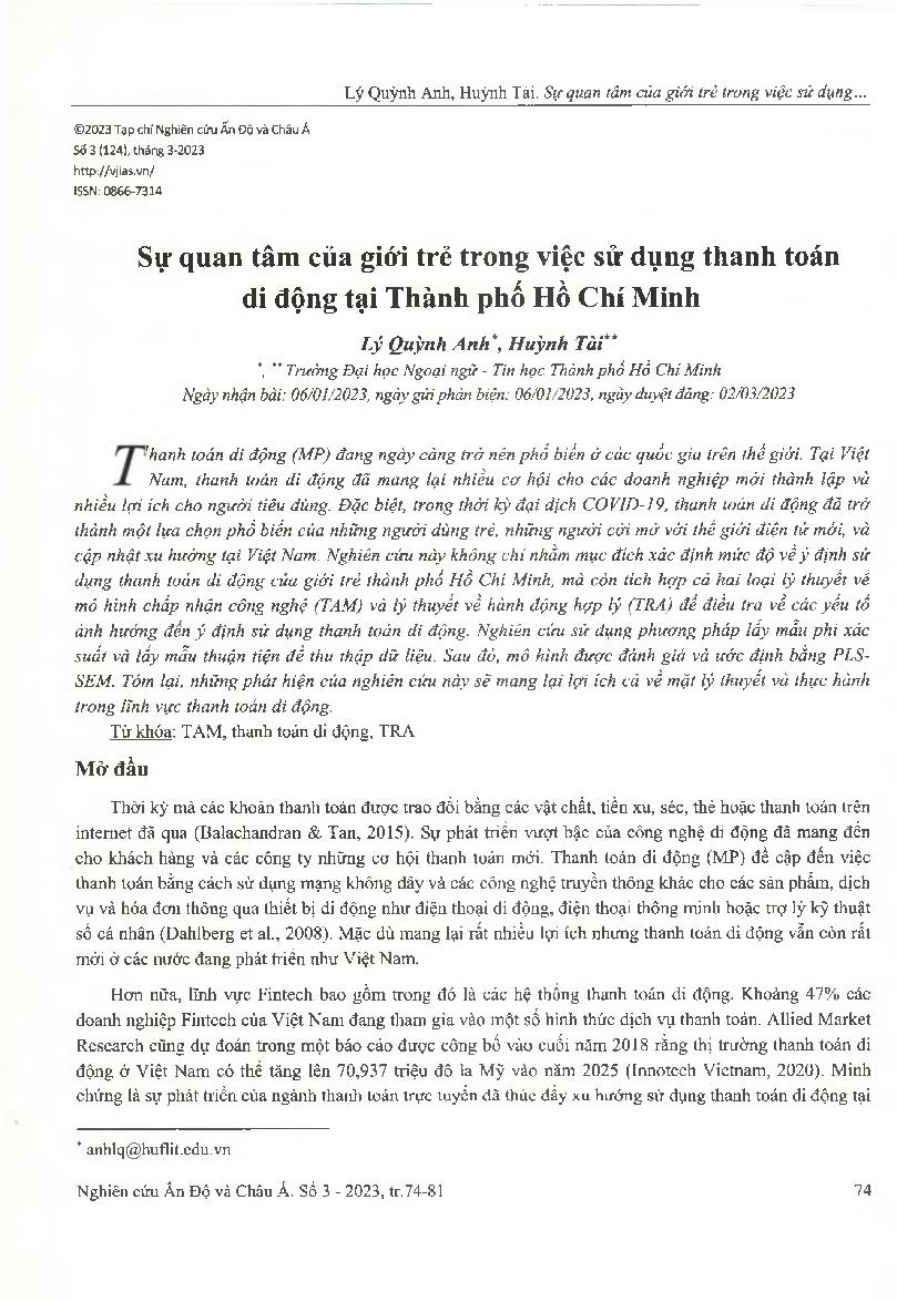 Sự quan tâm của giới trẻ trong việc sử dụng thanh toán di động tại Thành phố Hồ Chí Minh