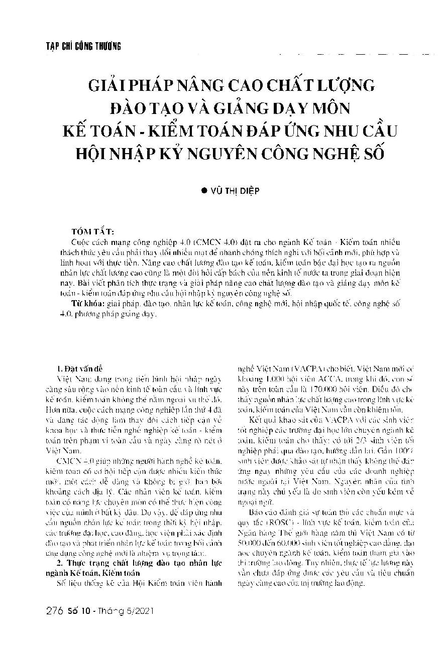Giải pháp nâng cao chất lượng đào tạo và giảng dạy môn kế toán - kiểm toán đáp ứng nhu cầu hội nhập kỷ nguyên công nghệ số