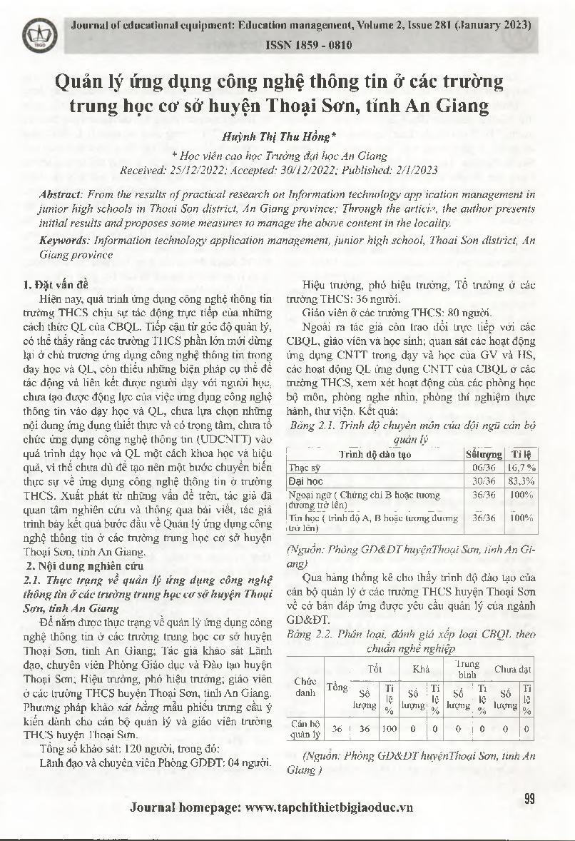 Tác giả: Trần Ngọc Trang; Lê Thị Song; Lê Cao Chiến;