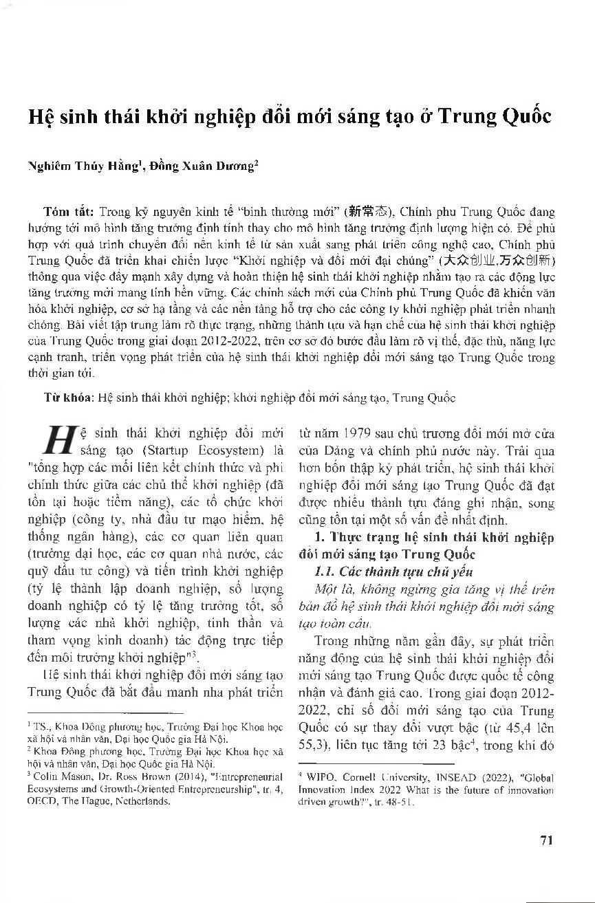 Hệ sinh thái khởi nghiệp đổi mới sáng tạo ở Trung Quốc = Innovation Startup Ecosystem in China