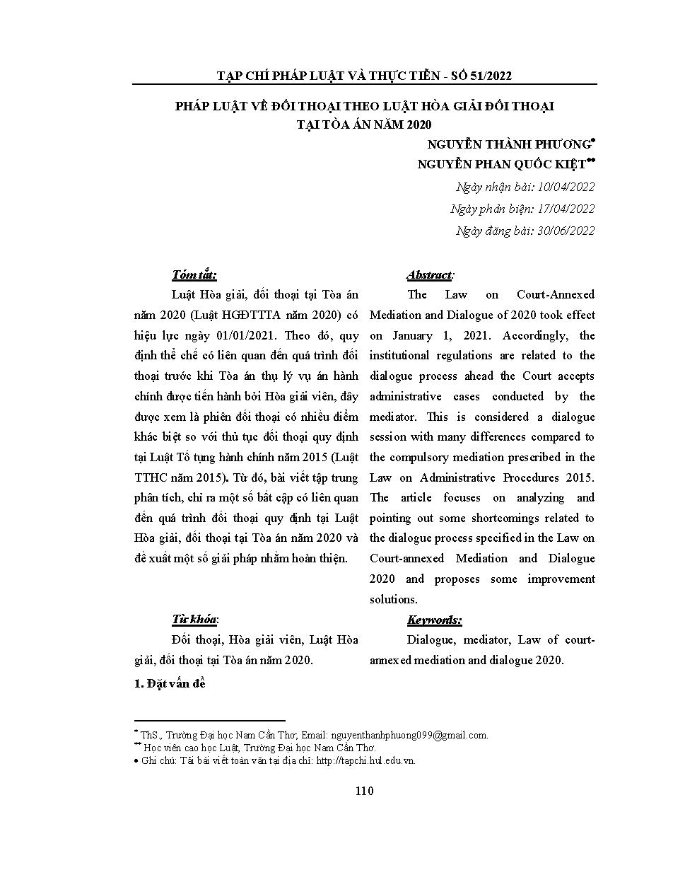 Pháp luật về đối thoại theo luật hòa giải đối thoại tại tòa án năm 2020 = Pháp luật về đối thoại theo luật hòa giải đối thoại tại tòa án năm 2020