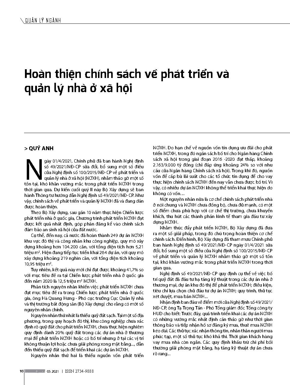Hoàn thiện chính sách về phát triển và quản lý nhà ở xã hội