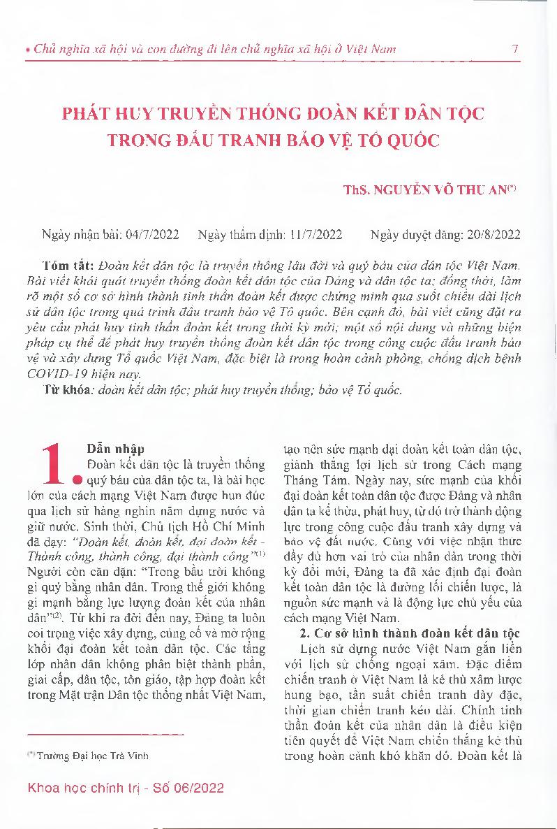 Phát huy truyền thống đoàn kết dân tộc trong đấu tranh bảo vệ tổ quốc