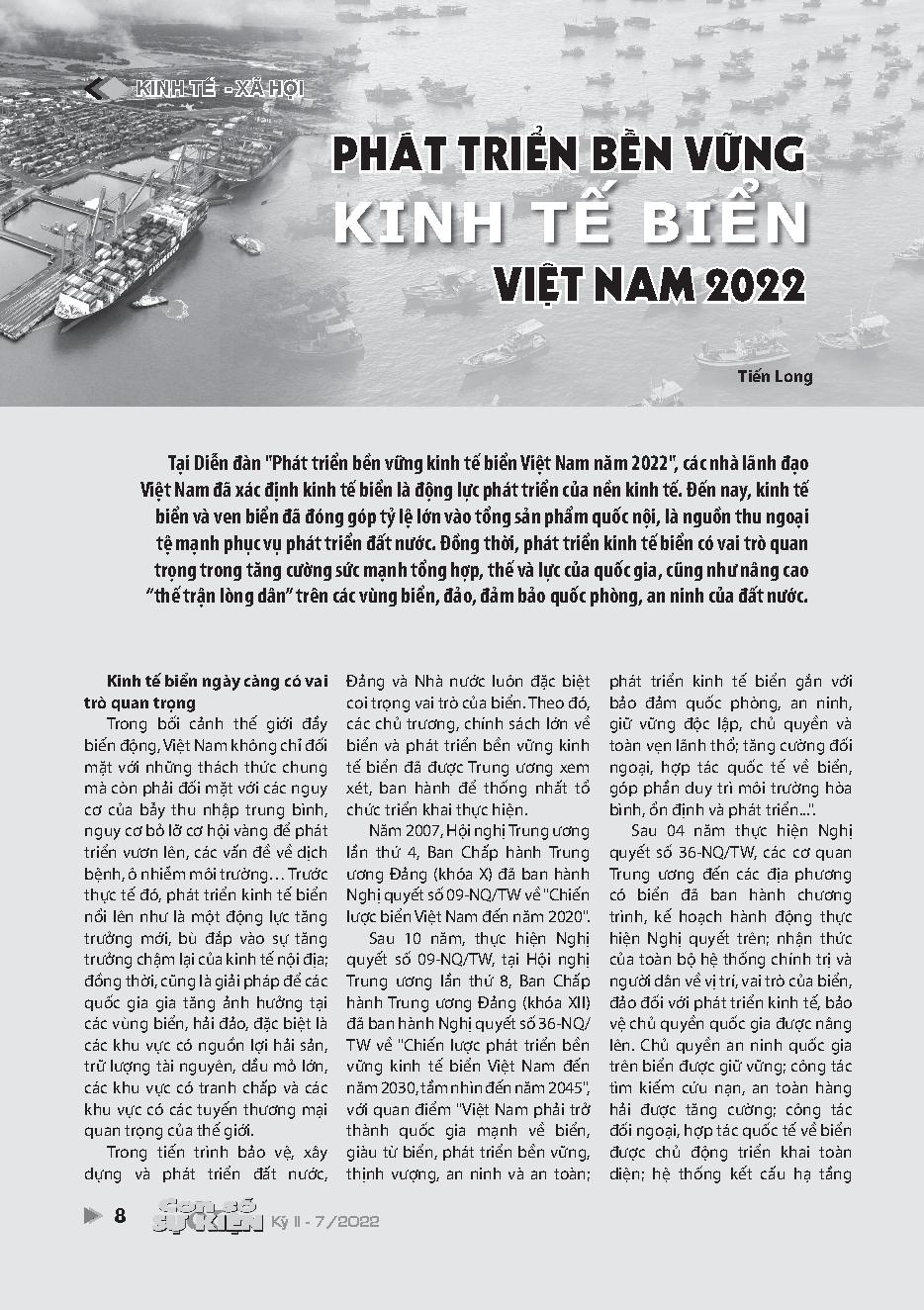 Phát triển bền vững kinh tế biển Việt Nam 2022 = Sustainable development of Vietnam&; 39;s marine economy 2022
